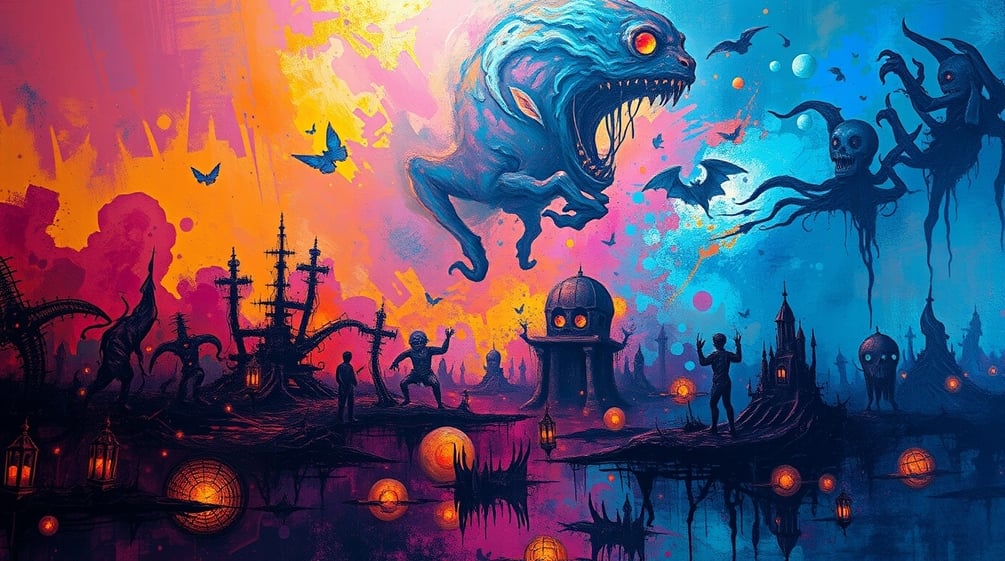 A dynamic 3D interpretation of a color field painting, where vibrant hues interact with light and shadow, creating a visually immersive and textured experience. The composition explores the tension between color and form, allowing the viewer to feel a sense of motion and depth.